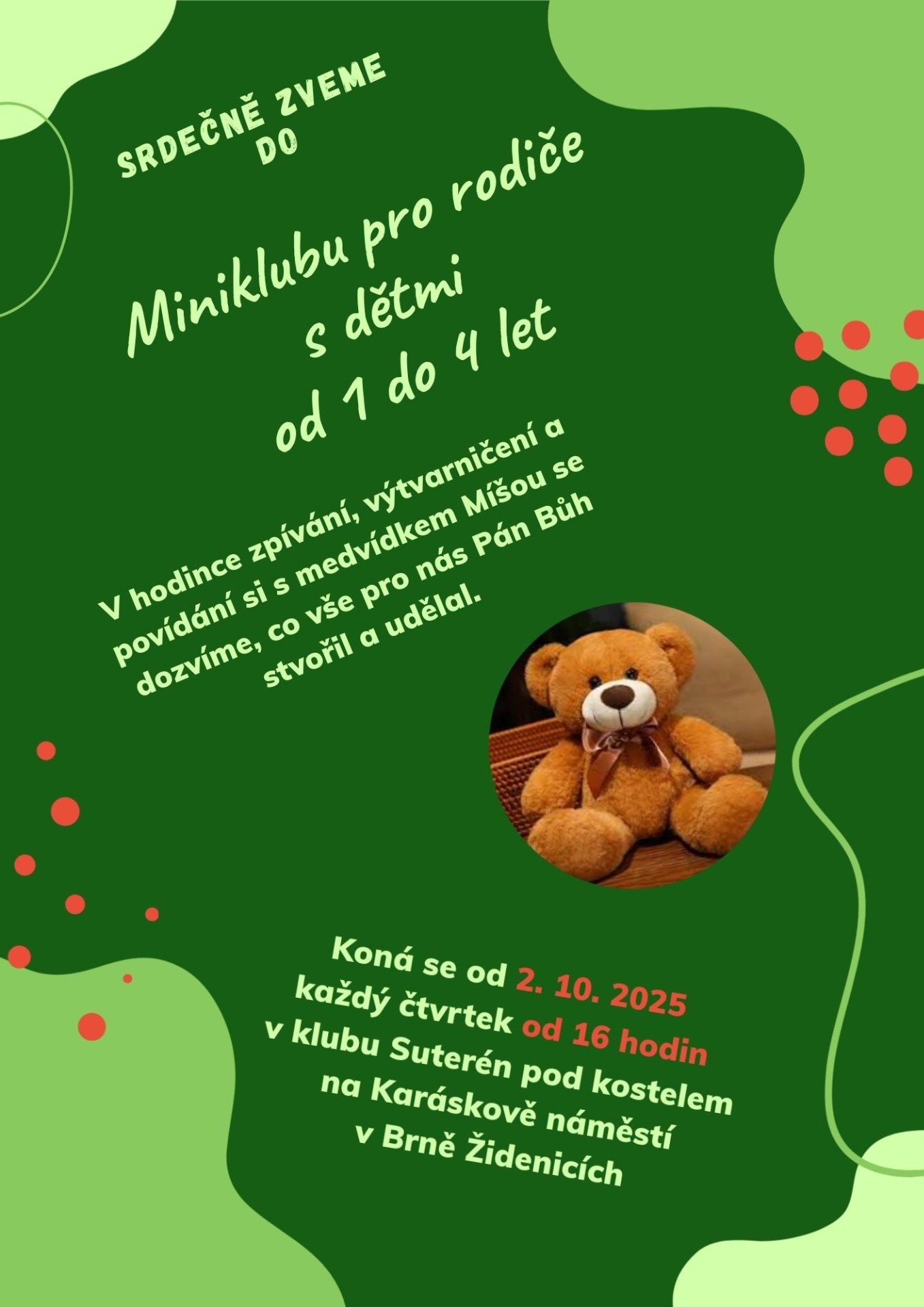 Miniklub pro rodiče s dětmi - čtvrtek v 16 hodin (poprvé v tomto školním roce se sejdeme 2. 10. 2025)
